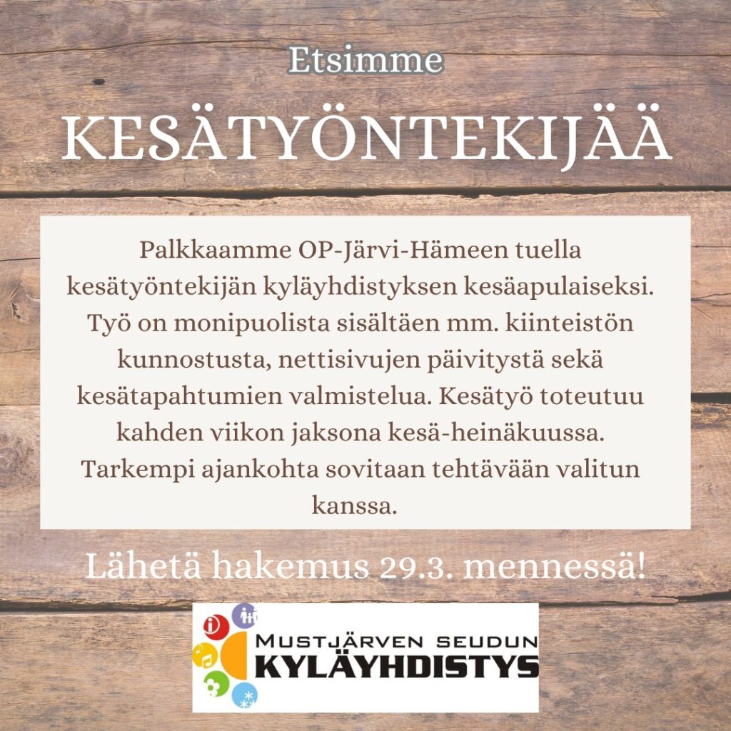 Tervetuloa Mustjärven seudun kyläyhdistyksen vuosikokoukseen la 28.3.2026 klo 12.00 kylätalo Riuttalaan